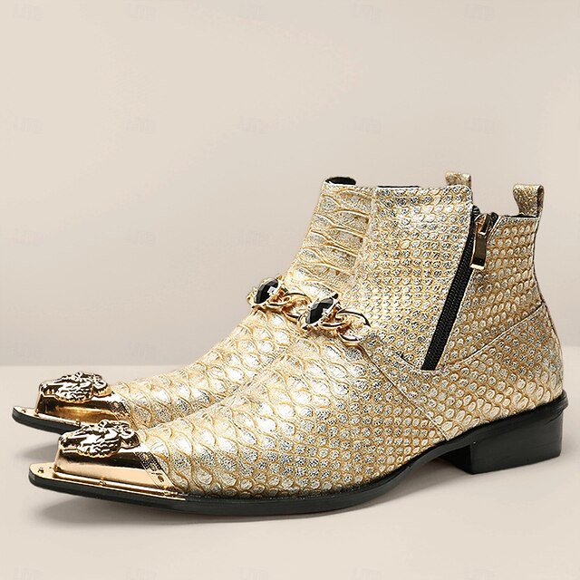 More information about Men's Gold Geometric Western Boots with Studded Accents – Unique Footwear for Trendy Occasions, Fashion Events and Special Celebrations
