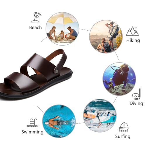 Mens Leather Hollow Out Casual Flat Sandals with Adjust Ankle Strap Round Open Toe Soft Sole Lightweight Outdoor Walking Slippers Shoes Summer Beach Sport Hiking Water Sandals 5