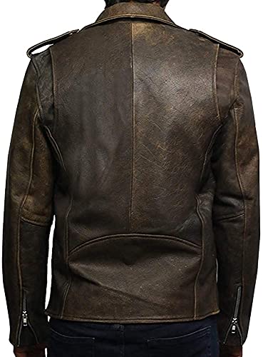 More information about BRANDSLOCK Mens Genuine Leather Biker Jacket Cowhide Brando Rustic