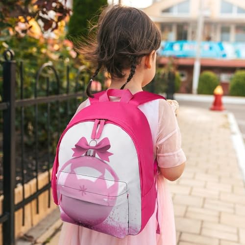 More information about Pink Christmas Ball Backpack Small Book Bag with Side Pocket, Lightweight Durable Backpack, Travel Rucksack, Pink-style