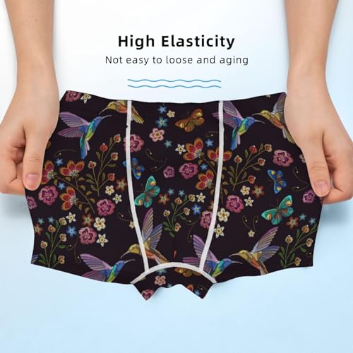 HOT ! Boys' Cotton Boxer Brief Soft Underwear-Humming Bird And Tropical Flowers