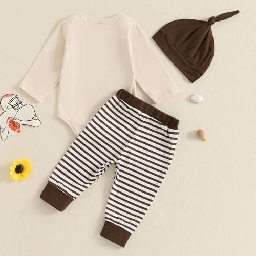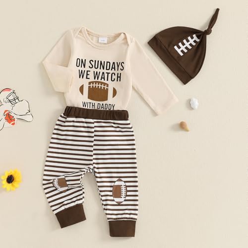 Muasaaluxi Newborn Baby Boy Football Outfit On Sundays We Watch Football with Daddy Romper Stripe Long Pants Hat Set 3