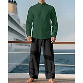 More information about Men's Linen Shirt T-shirt Suits Shirt and Pant Sets 2 Pieces Outfits Long Sleeve Stand Collar Spring Fall Plain Fashion Casual 2 Piece Vacation Daily Wear Going out Black+ Khaki Black Navy Blue Top