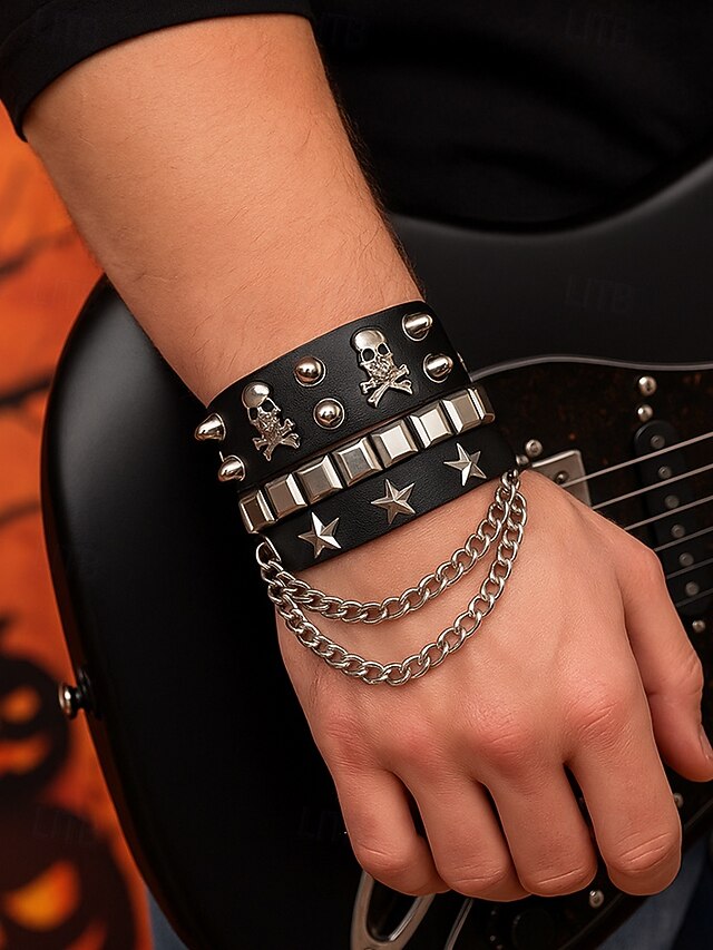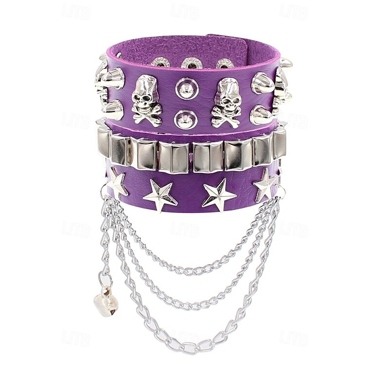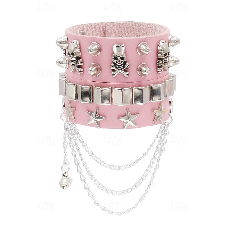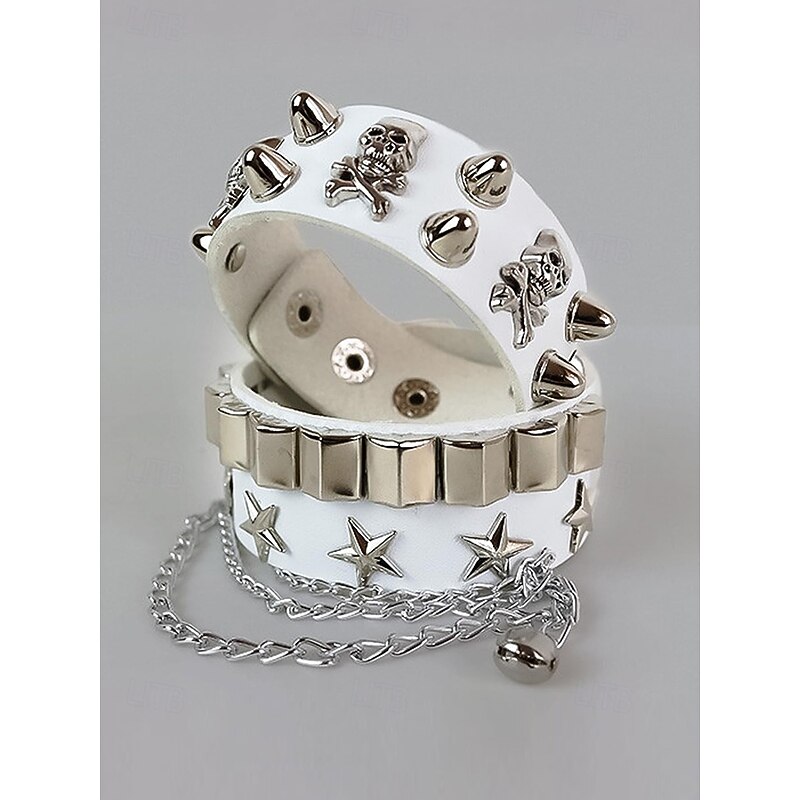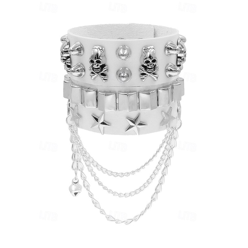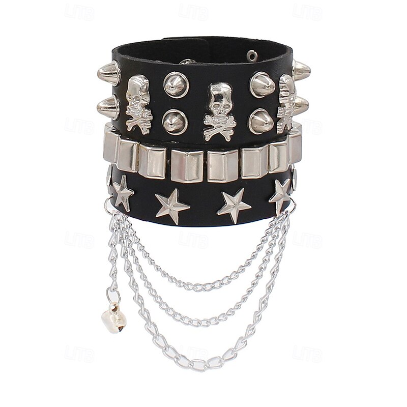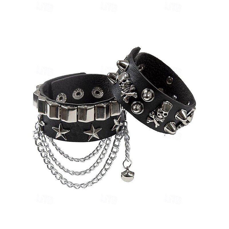 $11.99 - Unisex Halloween Punk Skull Studded Faux Leather Bracelet with Chains – Adjustable Gothic Wristband for Costume Party, Cosplay and Rock Concerts 2025. Shop for cheap Halloween Accessories online? Buy at lightinthebox.com on sale today!