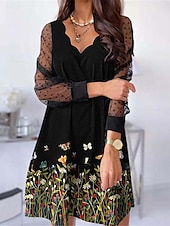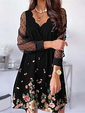 More information about Women's Casual Dress Floral Mesh Patchwork Scalloped Neck Mini Dress Vacation Long Sleeve Summer