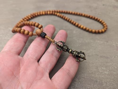 Santalum Sandalwood mala necklace rosary 108 prayer beads natural genuine sandal fragrant wood and Tibetan Buddhist Vajra pendant 5