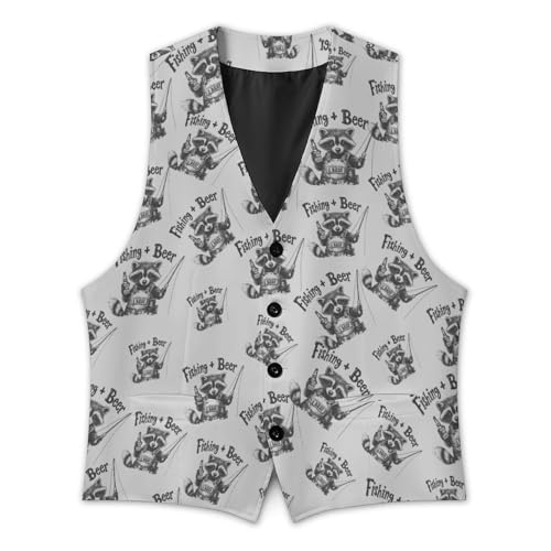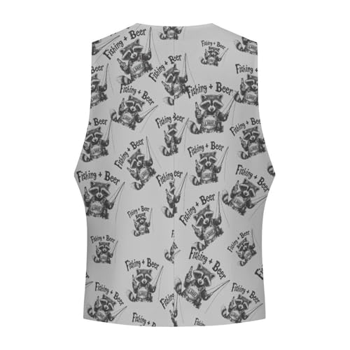 Fishing Beer Raccoon Suit Vest for Men Slim Fit Tuxedo Waistcoat Button Down V Neck Business Dress Coat 1