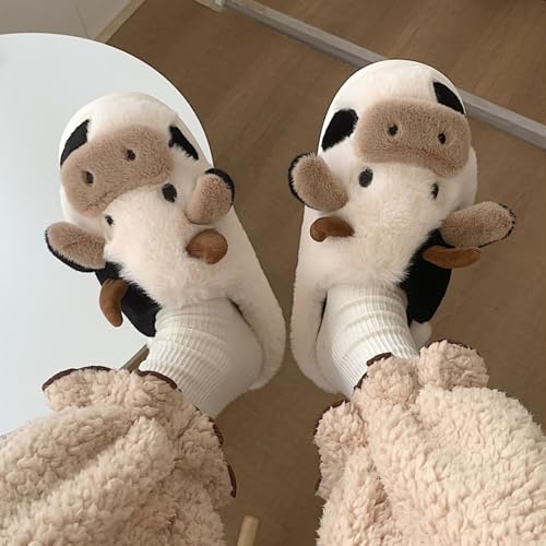 • ✅【Cute Cow Design】These plush slippers feature a delightful cow design that brings joy to every step you take around the house.