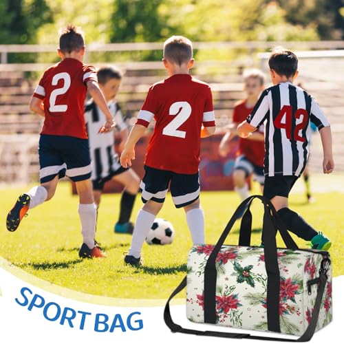 Christmas Flowers Print Sports Duffle Bag for Women Men Waterproof Overnight Weekender Bag with Adjustable Strap Travel Tote Bags for Beach Yoga Work Dance Swim 6