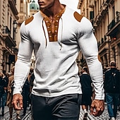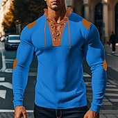 More information about Men's Waffle Shirt T Shirt Tee Tee Top Long Sleeve V Neck Spring & Fall Color Block Fashion Designer Basic Drawstring Vacation Street Going out Black White Royal Blue Top Tee for Men