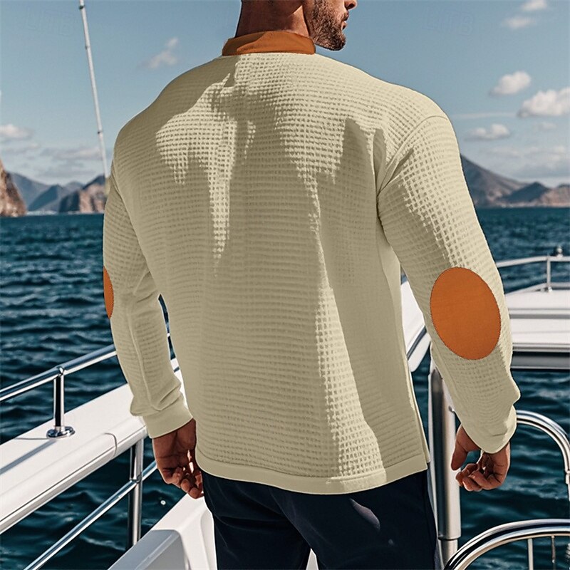 Crafted from a premium cotton blend, this men's long-sleeve shirt ensures a perfect balance between warmth and breathability. The waffle knit texture provides an extra layer of comfort, making it an excellent choice for spring and fall seasons.