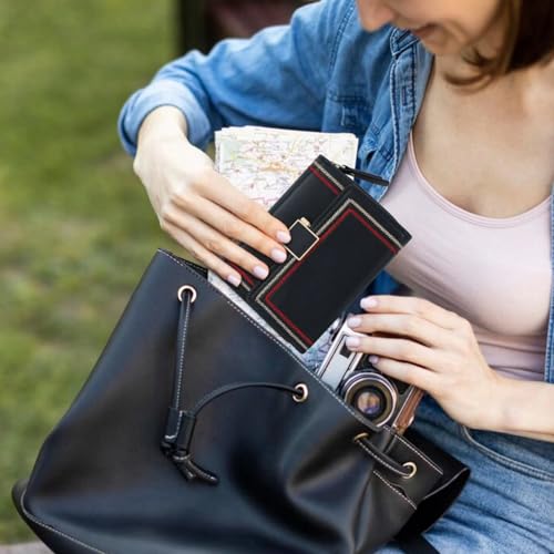 Wallet Women Credit Card Holder Black Small Wallets Cute Leather Coin Purse Minimalist Design Women's Travel Wallets with ID Window Kawaii Cash Wallet for Women Ladies and Girls