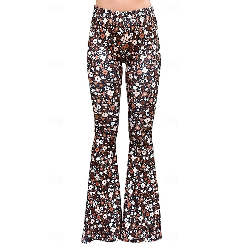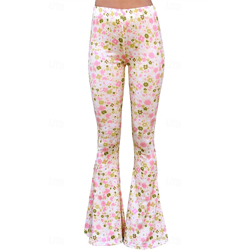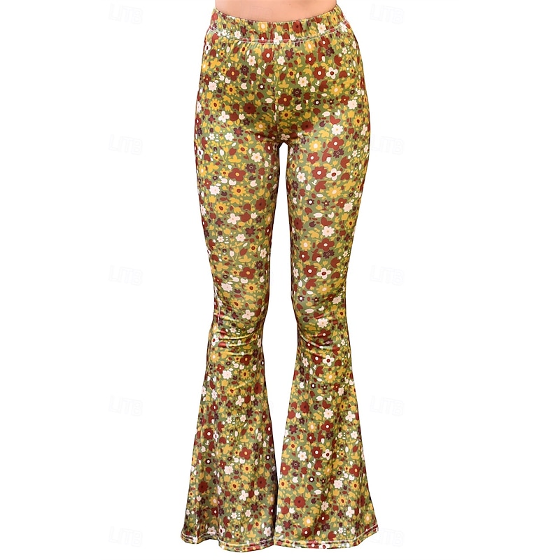 Retro Vintage Boho 1970s Bell Bottoms Pants Flare Leggings Flared Trousers Disco High Waist Floral Fancy Dress Women's Halloween Carnival Vacation Music Festival Festival Adults' Pants 7