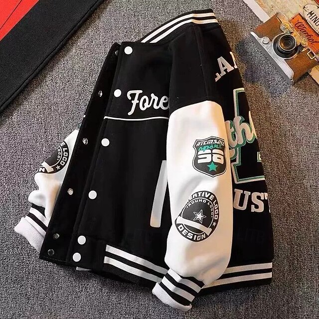 More information about Kids Unisex Baseball Jackets Outerwear Color Block Long Sleeve Comfort Buttons Soft Coat Outdoor Fashion Daily Black Green Spring Fall 4 years+