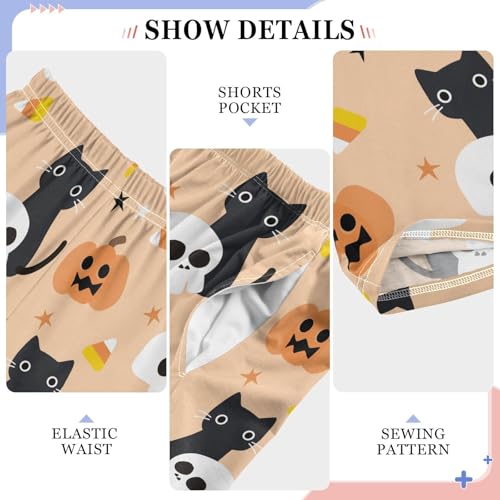 Boys' Pants Cat Halloween Pumpkin Long Bottoms Jogger Pants Elastic Waist Trousers with Pockets S-XL 6
