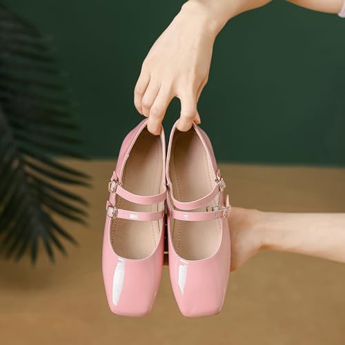 Parisuit Mary Jane Ballet Flats Women Square Toe Double Ankle Strap Pumps Comfortable Rockabilly Vintage Shoes 6