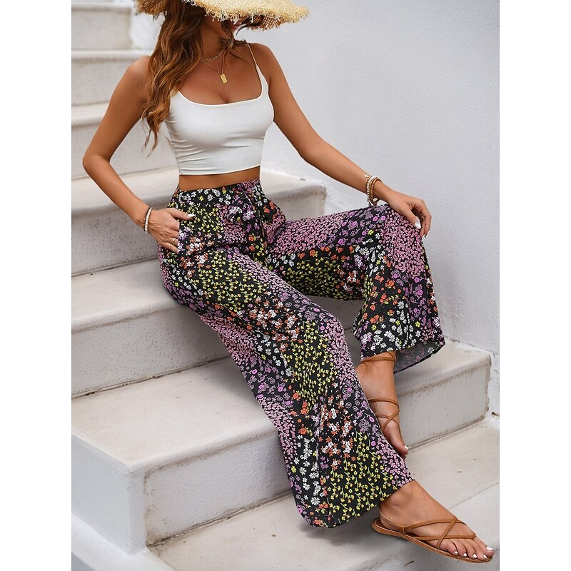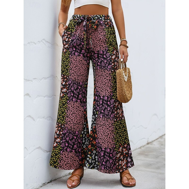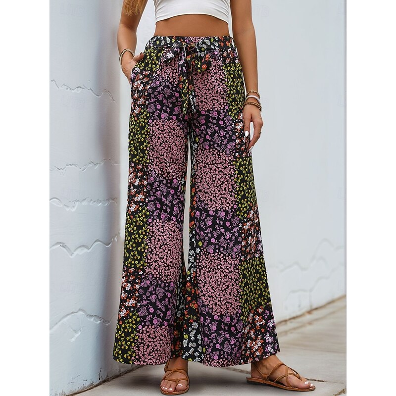 More information about Women's Wide Leg Chinos Fashion Streetwear Full Length High Waist Leopard Pocket Elastic Waistband Printing Comfy Soft Comfortable Micro-elastic Outdoor Street Black Summer Spring Regular Fit