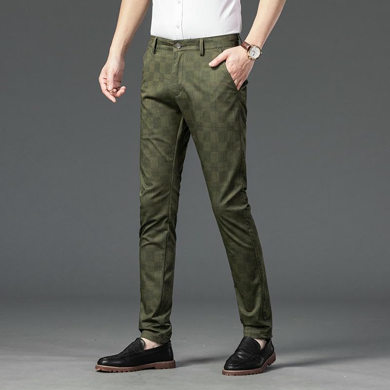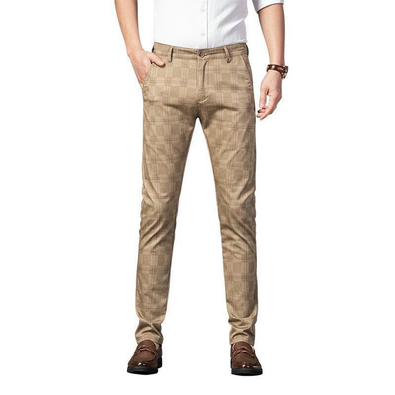 HOT ! Men's Spring Plaid Elastic Business Slim Straight Trendy Casual Pants