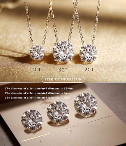 Raneecoco STUNNING FLAME 1.0-3.0 Carat Sterling Silver Cubic Zirconia Necklace for Women | 1ct Simulated Diamond | Round CZ Solitaire Gold Pated Dainty Pendant Necklace, 16+2" Chain 6