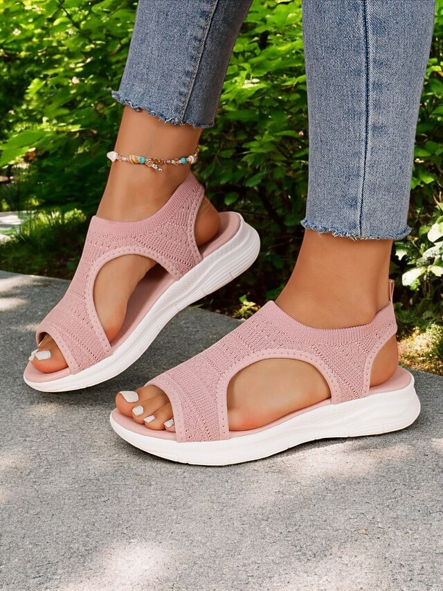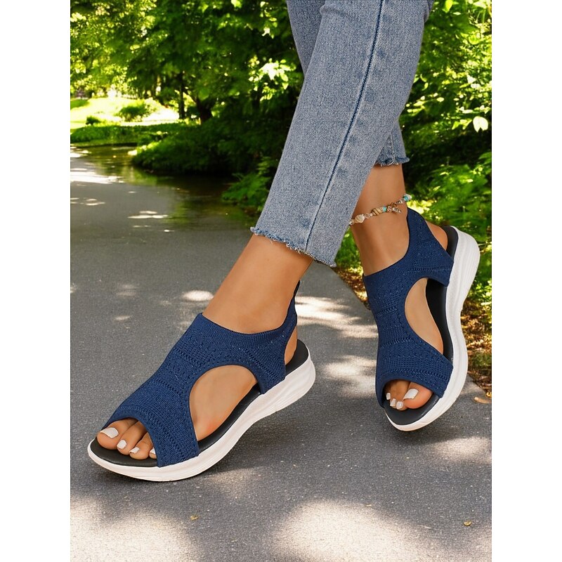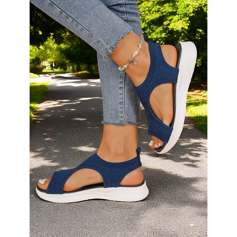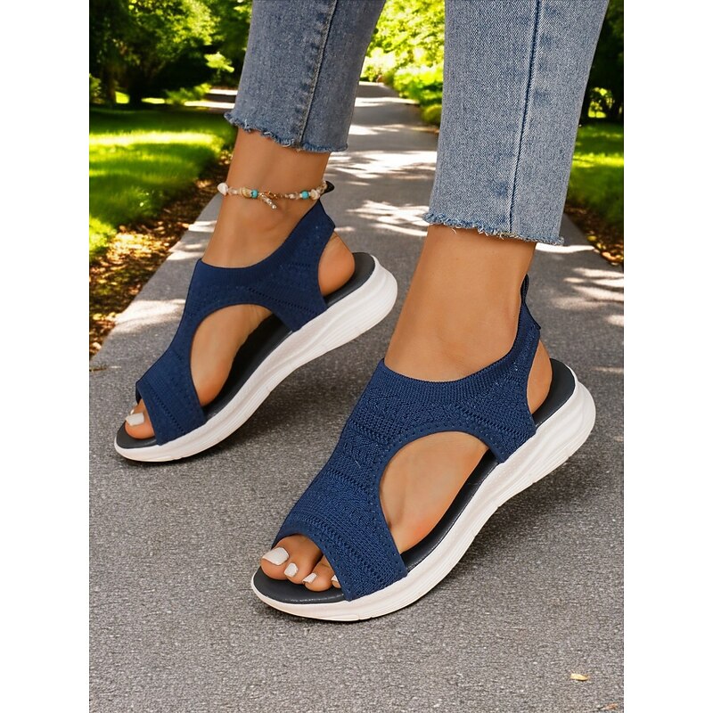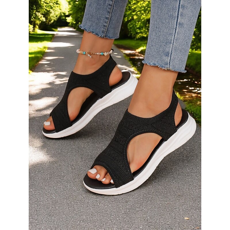 HOT ! Women's Knit Open-Toe Sandals with Lightweight Cushioned Sole, Breathable Design and Sporty Style for Walking and Casual Summer Outfits