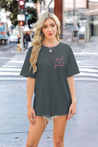 HOT ! Christian Shirts for Women Oversized God is Good Shirt Jesus Bible Tshirts Religious Crewneck Short Sleeve Top