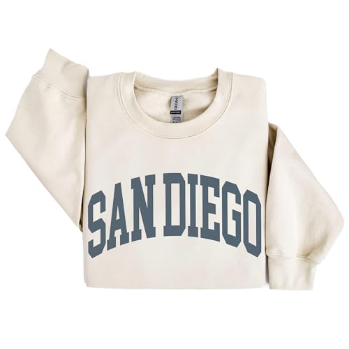 San Diego City Sweatshirt, California State Pullover, Vintage Aesthetic Varsity, Trendy Gift For Him or Her, Unisex Crewneck Sweatshirt Sand 7