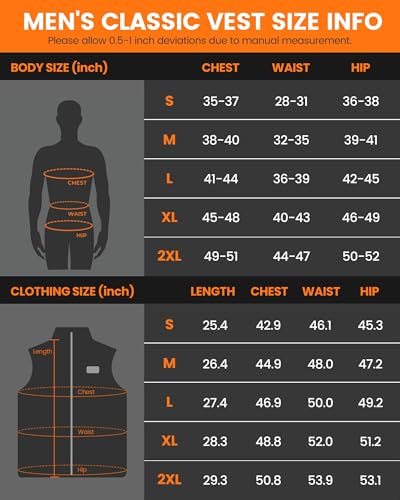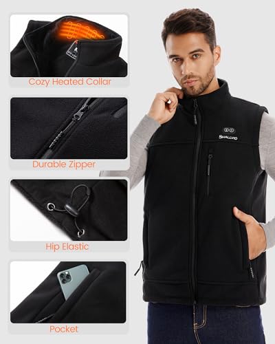 Fabric type: PolyesterCare instructions: Machine WashOrigin: Imported【8 heating zones and 3 temperature levels】: The heated vest keeps you warm in the cold winter. 8 carbon fiber heating elements generate heat in the collar, back, waist, chest, and below the two pockets, providing warmth for the whole body. Simply press the button to adjust the 3 heating settings. Blue light - Low(113℉), white light is Medium(131℉), and red light - High(149℉).Safe & long-lasting Warmth】: This heated vest men is powered by a 7.4V 12000mAh battery pack, which can work for up to 8 hours on a single charge. The dual control switch independently controls different heating zones, providing customized warmth when you need it most. It also has two built-in NTCs to prevent overheating and ensure your safety.enduring Design and Built to Last】: Our men's resistant lightweight heated vest features a plush lined full collar, providing comfortable warmth and protection outdoors. It has a classic quilted pattern, perfectly fitting seam details, zippered pockets, and a stand-up collar. This is a long-lasting heated vest you will enjoy for seasons to come.【Suitable for All Occasions and Everyday Wear】: The SHALLVIO heated vest is suitable for various winter activities and daily use, such as golf, morning hikes, skiing, cycling, and factory work. The neck heating promotes blood circulation, soothes muscles, and fills your body with soothing warmth. machine washable! Easily clean and maintain with the included mesh laundry bag.【SHALLVIO Service & Thoughtful Gift】: Looking for a exceptional and practical gift? Our heated vest is an ideal choice. Surprise your loved ones with a warm gift during the holidays. If you are not satisfied with the heated vest for any reason, please feel free to contact us. We provide a friendly customer service guarantee. Package includes:1 * Heated Vest for men ,1* 12000 mAh Battery Pack,1* Type C cable,1* Gift Bag,1* User Manual.