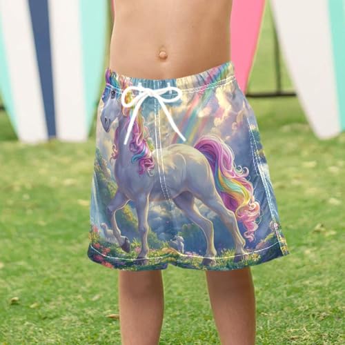 Pigsaly Boys Swim Trunks Unicorn Rainbow Cloud Boys Board Shorts Swimsuit Swimwear Summer Bathing Suit 5T 3