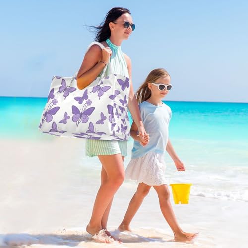 OTVEE Purple Butterflies Pattern Beach Bags for Women Ladies Large Canvas Tote Shoulder Bag Waterproof Travel Bags for Gym Swim Pool Camping 5