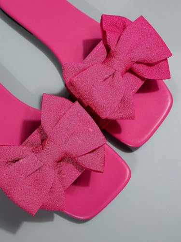 GORGLITTER Women's Bow Sandals Dressy Cute Metallic Square Open Toe Slip on Summer Flat Sandals 6