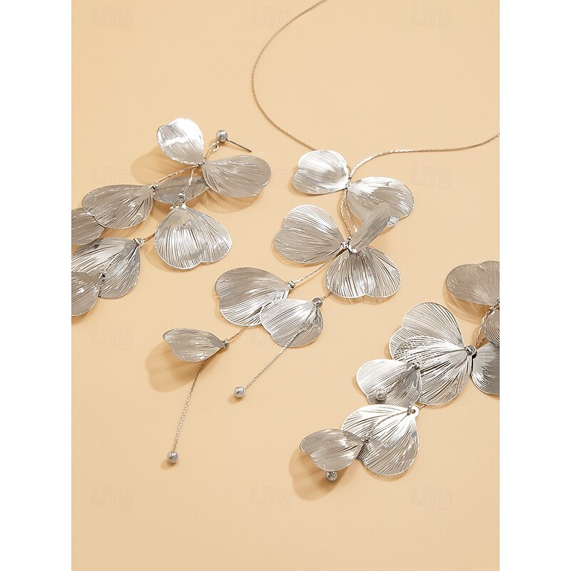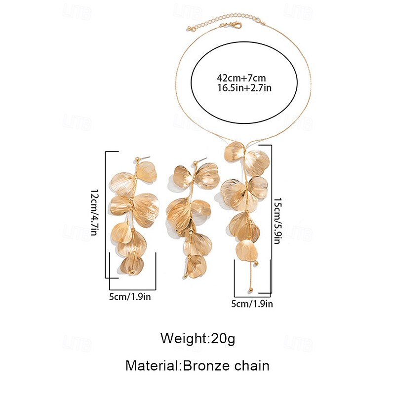 HOT ! Gold Petal Pendant Necklace and Drop Earrings Set – Elegant Floral-Inspired Jewelry for Women, Perfect for Weddings, Parties, and Formal Events