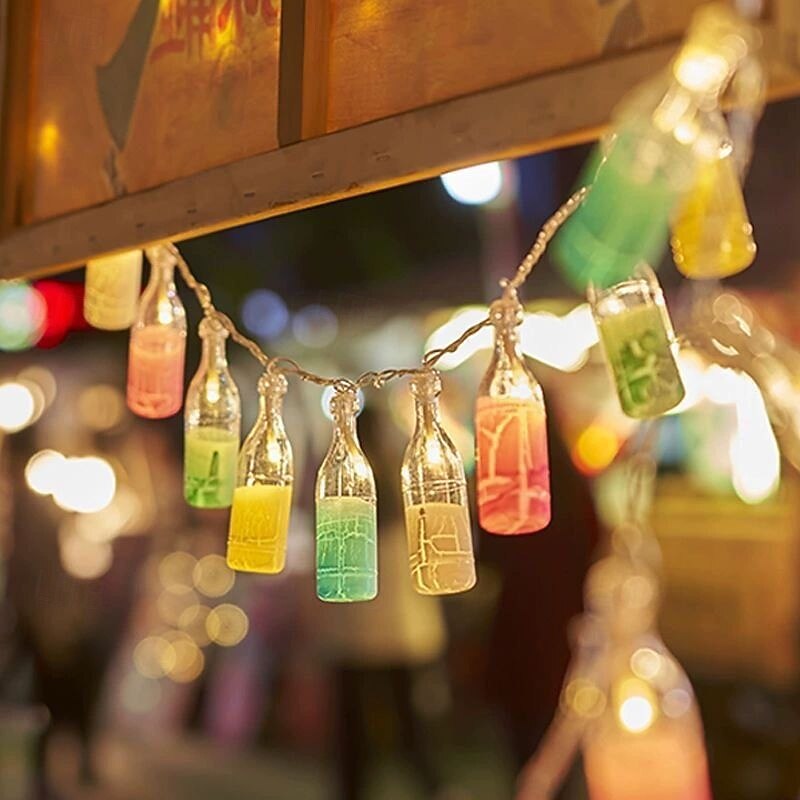 LED Bar Atmosphere Light 2m 10LEDs Battery Powered Beer Bottle Fruit Wishing Bottle Fairy String Lights Camping Party Home Balcony Garden Xmas New Year Decoration 7