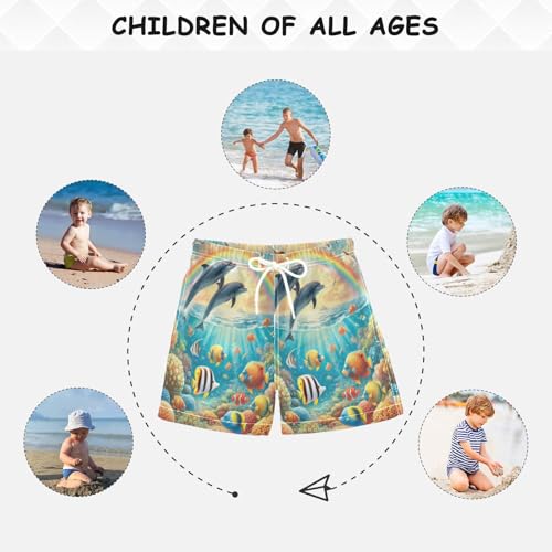 Ocean Rainbow Dolphins Boys Swim Trunks Quick Dry Toddler Swimsuit Boy Swimwear Board Shorts Bathing Suits L 3