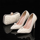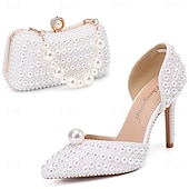 HOT ! Women's Pearl High Heels and Clutch Set – Pointed Toe Stiletto Bridal Pumps with Matching Beaded Purse for Wedding, Engagement & Formal Events