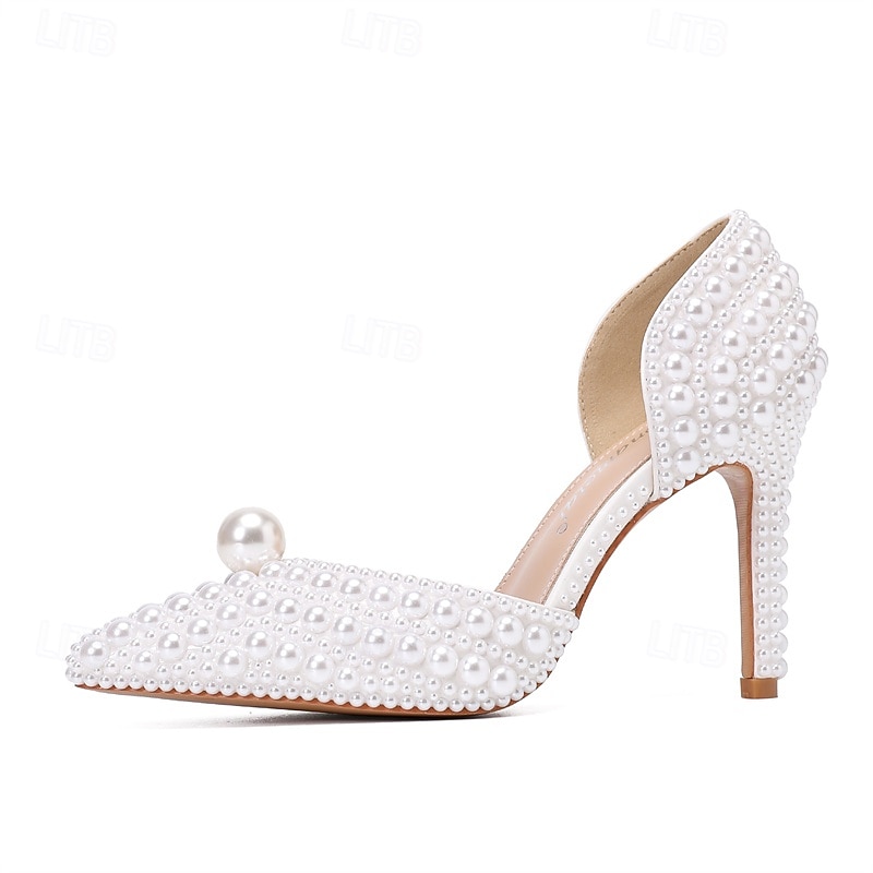 Women's Pearl High Heels and Clutch Set – Pointed Toe Stiletto Bridal Pumps with Matching Beaded Purse for Wedding, Engagement & Formal Events 6