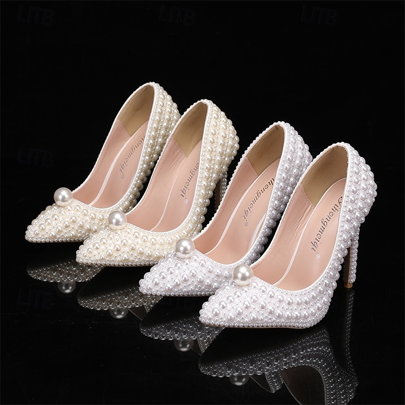 Women's Pearl High Heels and Clutch Set – Pointed Toe Stiletto Bridal Pumps with Matching Beaded Purse for Wedding, Engagement & Formal Events 11