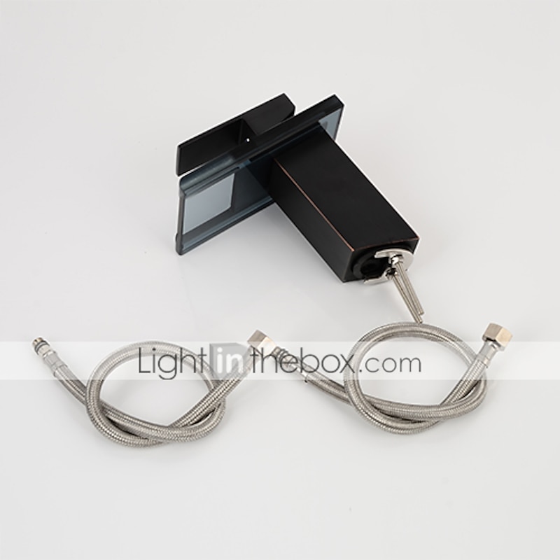 HOT ! Single Handle Bathroom Faucet Oil-rubbed Bronze with 3-color LED Waterfall Brass Basin Sink Faucet Black Adjustable to Cold and Hot Water