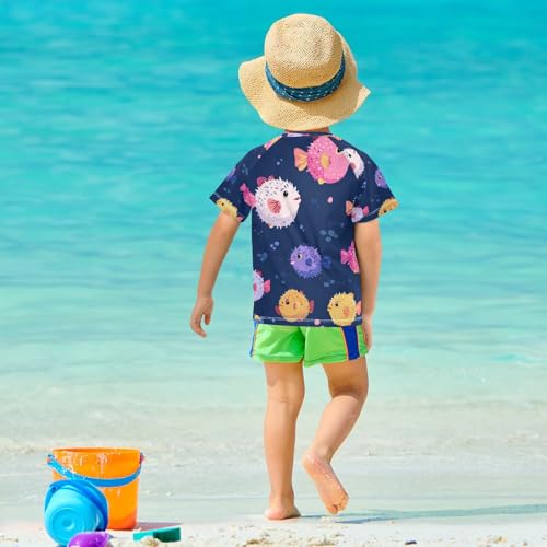 Boys Short Sleeve T-Shirts Blowfishes Fish Blue Rashguard Kids Swim Shirts Sun UPF 50+ 1