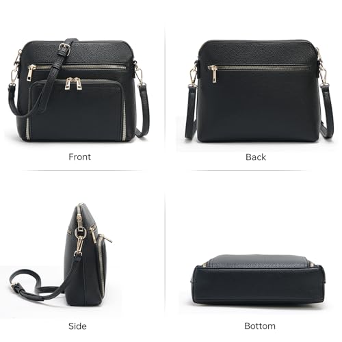 • Multipockets for Easy Organization – Designed with 1 main pocket (with 1 zipper + 2 slot pockets), 1 RFID-protected front zipper wallet (8 card slots, 1 slot pocket, 1 zipper pocket), 1 front zipper pocket, and 1 back zipper pocket. Perfectly organizes phone, cards, keys, wallet, makeup, and more.