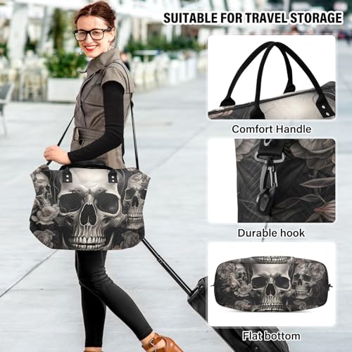 HOT ! Large Travel Duffel Bag, Rose and Skulls Sports Tote Gym Bag, Shoulder Weekender Overnight Bag for Women Men, Carry On Luggage with Toiletry Bags