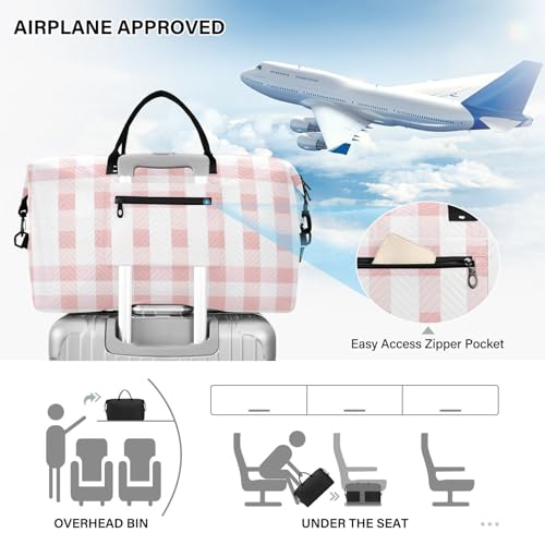 CEBUGI Pink Checkerboard Quilted Duffle Bag for Women Large Carry On Travel Weekend Bag Hospital Bags for Labor and Delivery 7