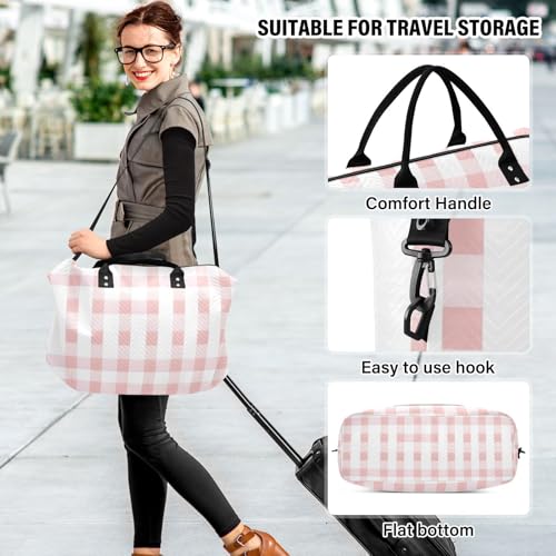 CEBUGI Pink Checkerboard Quilted Duffle Bag for Women Large Carry On Travel Weekend Bag Hospital Bags for Labor and Delivery 6