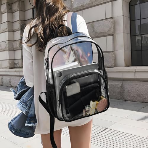 • Ergonomic Comfort – The heavy-duty clear backpack includes padded, adjustable shoulder straps with reinforced stitching for extra support. Wider straps distribute weight evenly, reducing shoulder strain during long wear.