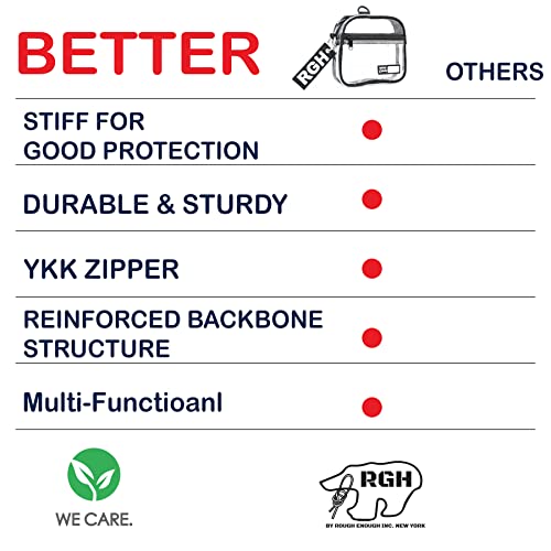 • Quart Size Travel Bag with High Quality Trims: Rough Enough TSA approved toiletry bag is made from durable and sturdy, water-resistant clear plastic PVC, this clear travel bag for toiletries features a Japanese YKK zipper and a USA Duraflex D ring buckle, ensuring long-lasting use