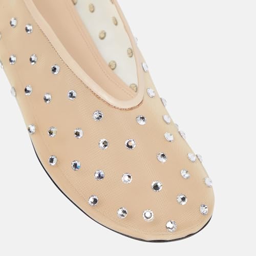 Women Mesh Ballet Flats Rhinestone Breathable Mesh Flats Slip On Ballerina Shoes Embroidered Floral Comfortable Casual Dress Shoes 6