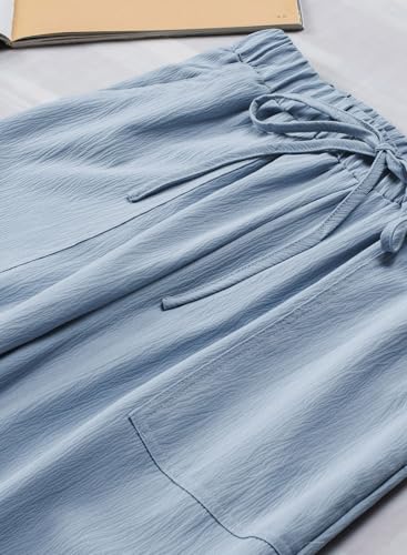 Casual Womens Drawstring Waist Crinkled Straight Wide Leg Pants with Pockets 7