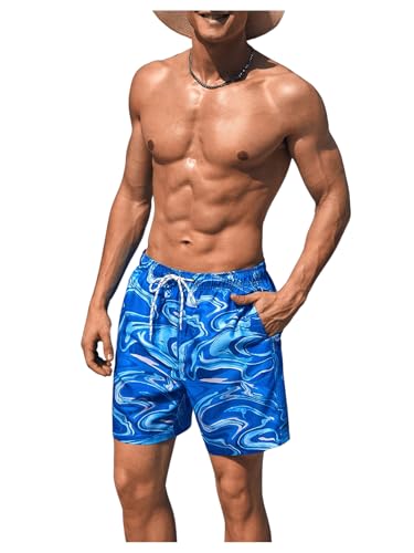 Floerns Men's Swim Trunks Floral Print Swimwear Drawstring Waist Board Shorts 3
