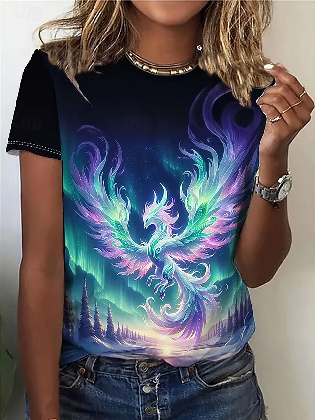 Women's T Shirt Summer Tops Bird Scenery Classic Casual Short Sleeve Crew Neck Crop Tops Daily Weekend Print Rainbow Summer Spring Fall 1