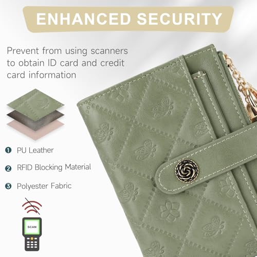 • Elegant design: This women's wallet features beautiful butterfly and floral embossing on high-quality vegan leather. The floral snap button and quilted pattern add elegance, making it a stylish and timeless accessory for any occasion