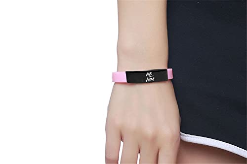 HOT ! 2 Pack He Him Pronouns Identity Jewelry - Adjustable Male Genderqueer Lgbtq Nonbinary NB Pride Silicone Bracelet for Adults Kids, He Him His Pronoun Gender Wristband Necklace Set for Men Boys
